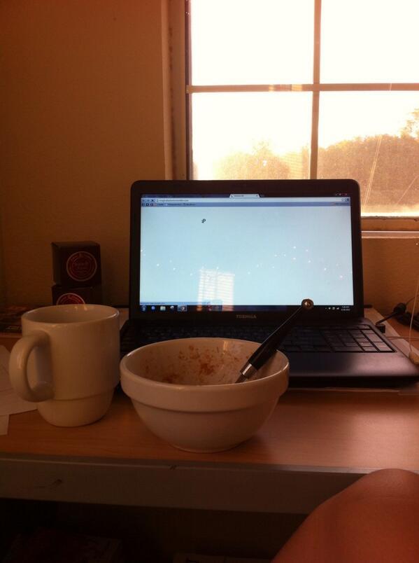 WOOOHOOOO, my first night as a college kid living on my own and I fell asleep at 10. But, hey, I’m not complaining, I enjoy my mornings! :] After all, look at my view: the sun is streaming in, a wonderful bowl of oatmeal {yes, I am obsessed}, and a strong cup of coffee. I am ready to tackle today!
