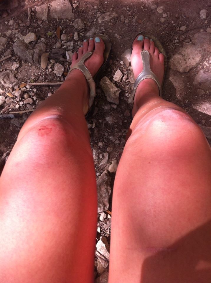 I tend to cling to the rock (even though I wouldn’t actually fall) so I get a bit sliced up and bruised! I even left a blood mark close to where my knee was in that picture!