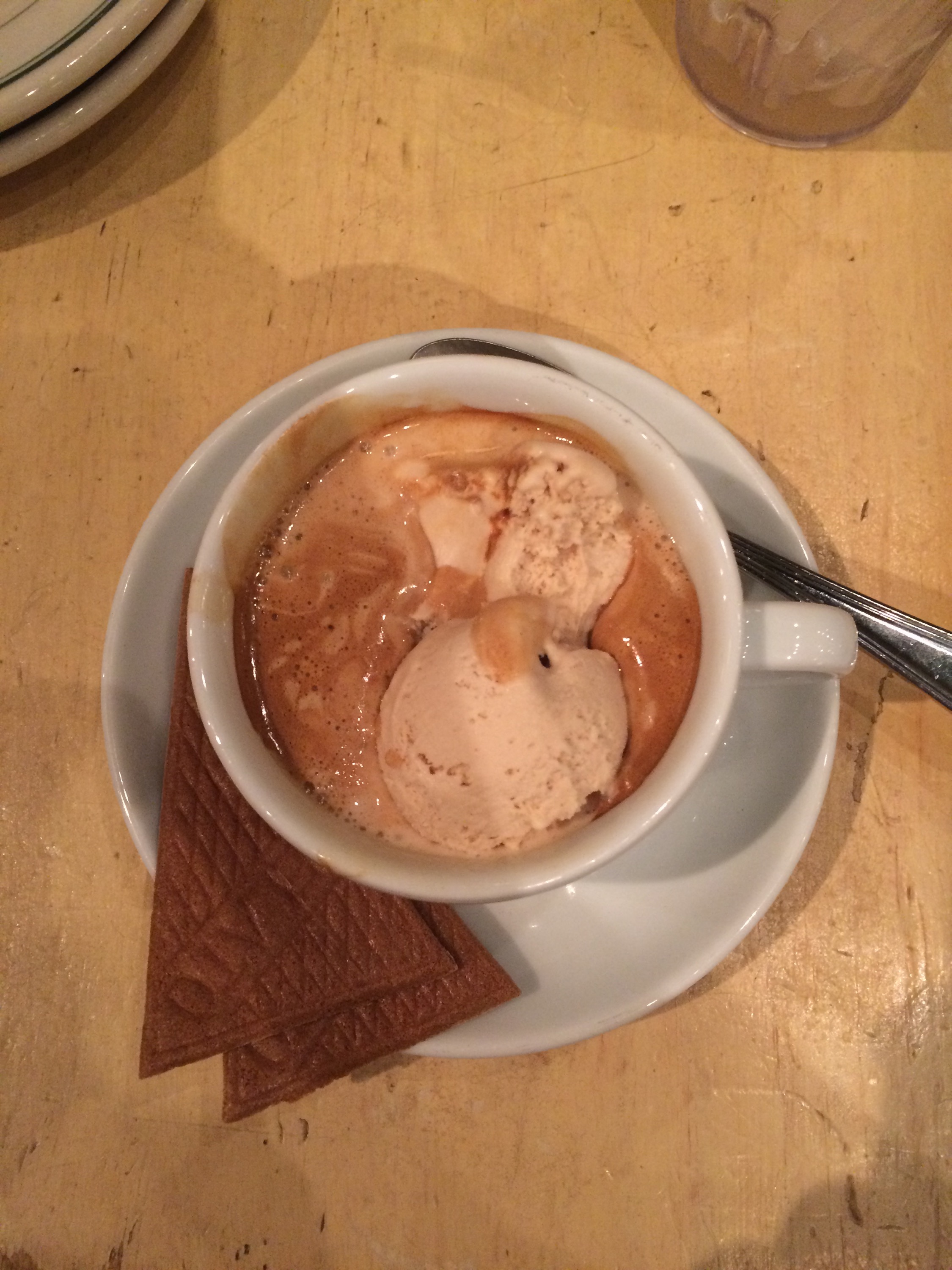 3. This absolute gem of a dessert. Affogatto with hazelnut gelato? All about it.