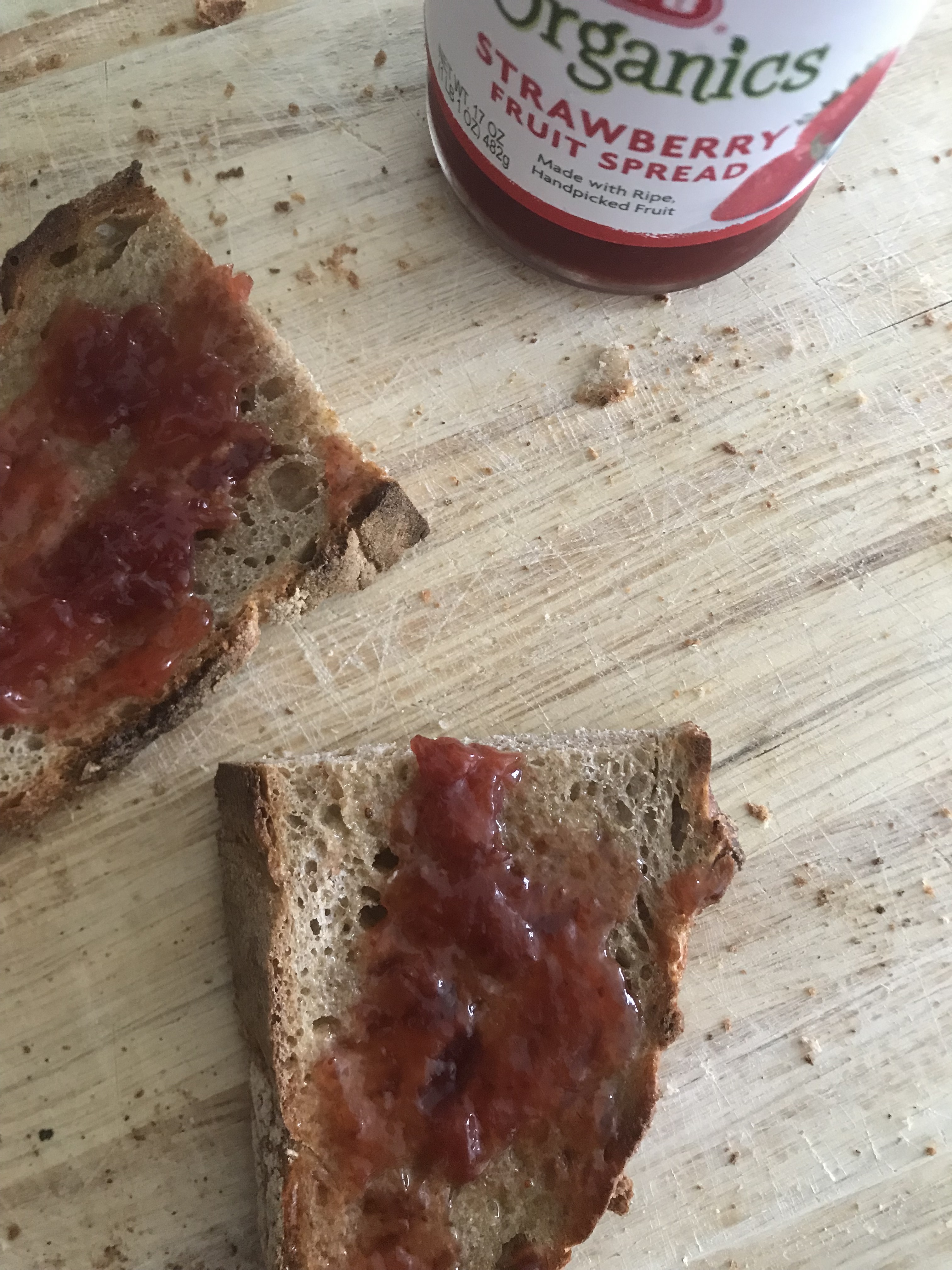 Homemade sourdough with butter and jelly.