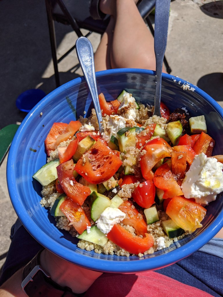 Update: quarantine still sucks, no surprise there! BUT, not going to work/internship has allowed me to eat more of my meals outdoors. Not to mention, we’ve been having some pretty spectacular weather here in Austin! I think I’d like to eat at least one meal/snack/drink outside a day (weather permitting). What about you?