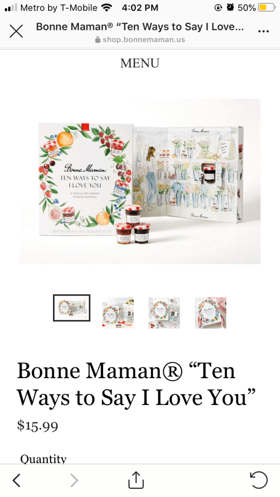 Okay, this one I stumbled across on Instagram. I love these little jams. They’re so cute and so tasty! When I saw that they were selling these advent calendar Mother’s Day gifts, I was so… tickled! That’s the best word I can find to describe what I felt! They’re so mini and adorable and quaint.