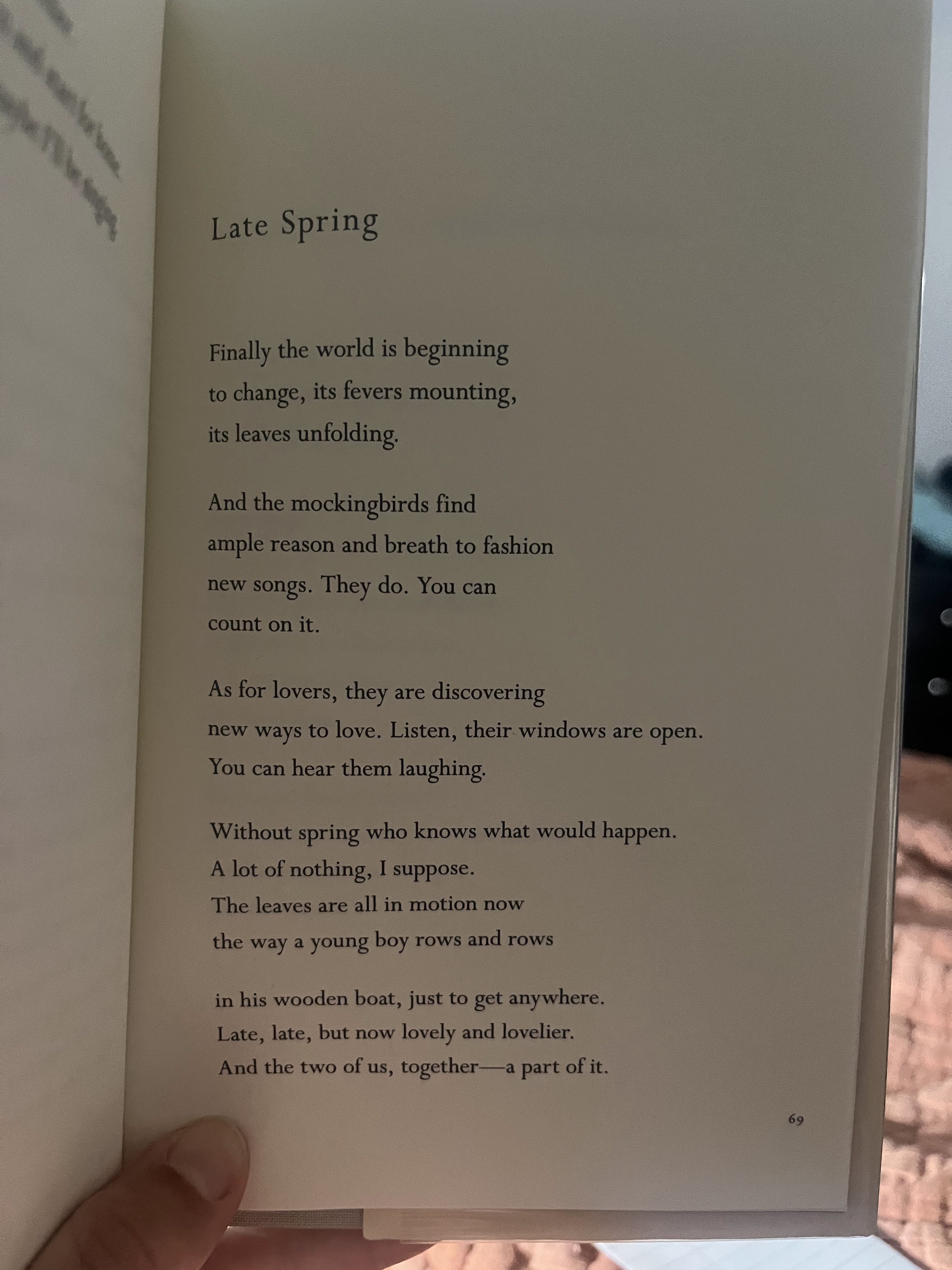 - Mary Oliver’s poetry. I read Felicity and Why I Wake Early and absolutely loved them. I am reading Dog Songs now and it’s tugging at all my heartstrings. Highly recommend!