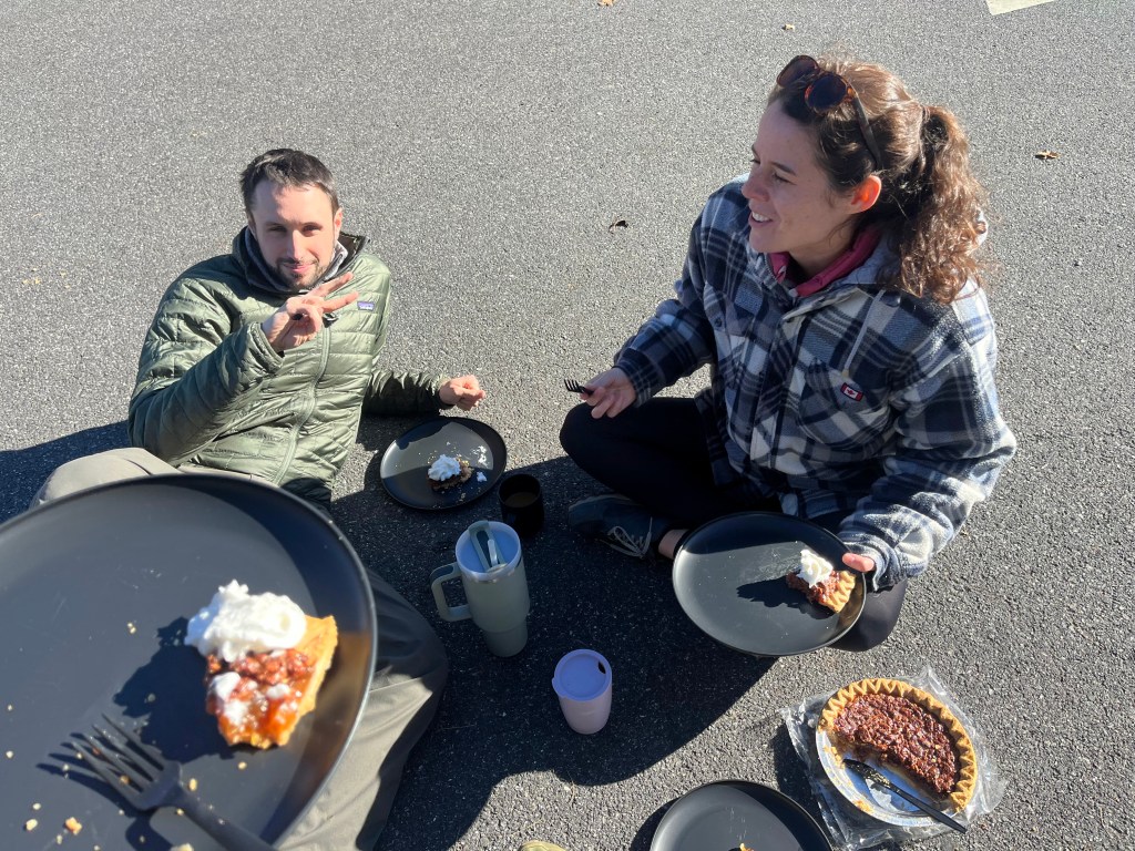 Like eating pecan pie and drinking coffee after Thanksgiving lunch at a lodge in Shenandoah! Could we have paid for overpriced pie in the restaurant? Of course. Would we rather eat defrosted Marie Calendar’s in the parking lot? Obviously.