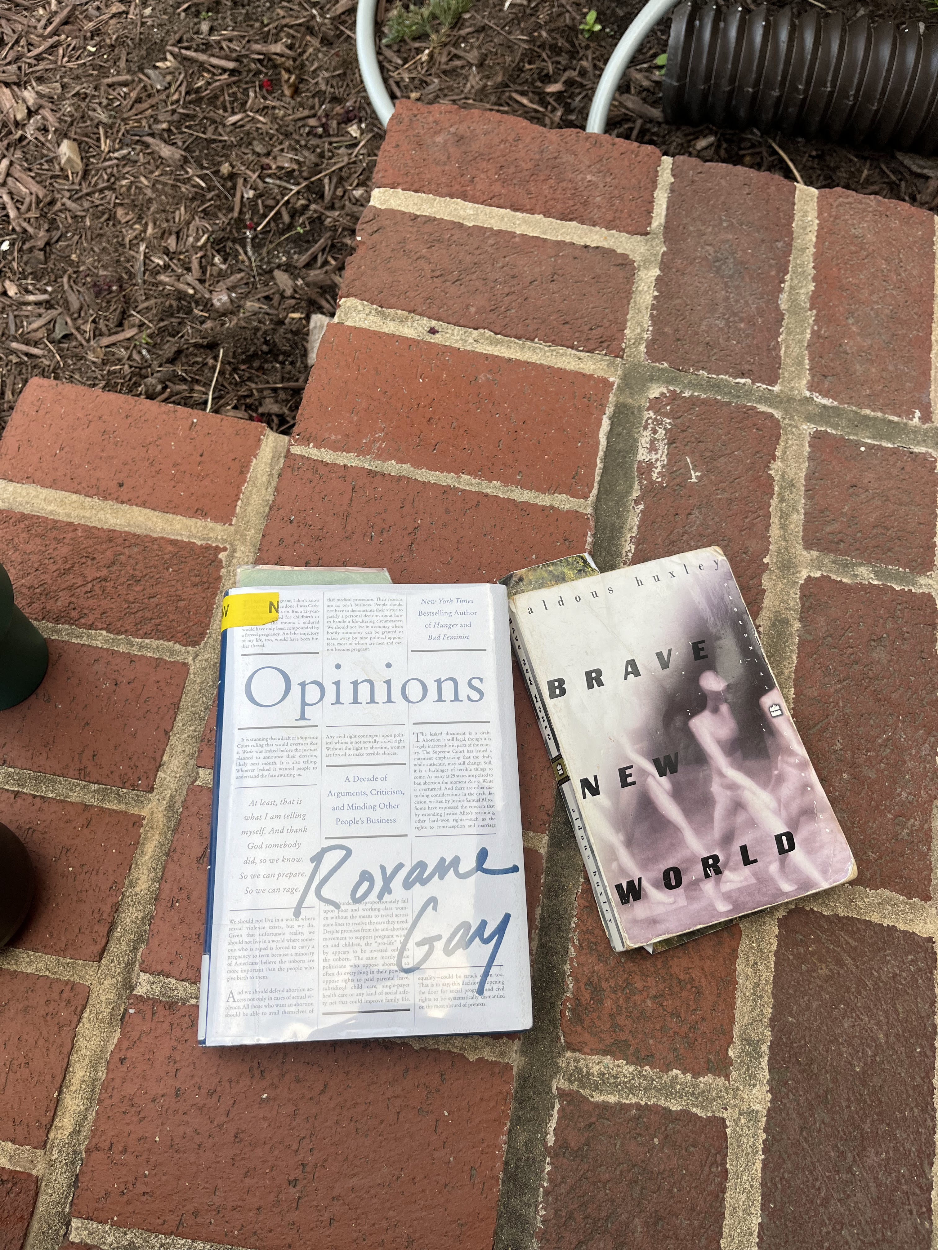 …Reading: I just finished Brave New World and wow, it continued to be odd. I’m still working on Opinions, but I got a few fun books from the library to read next!