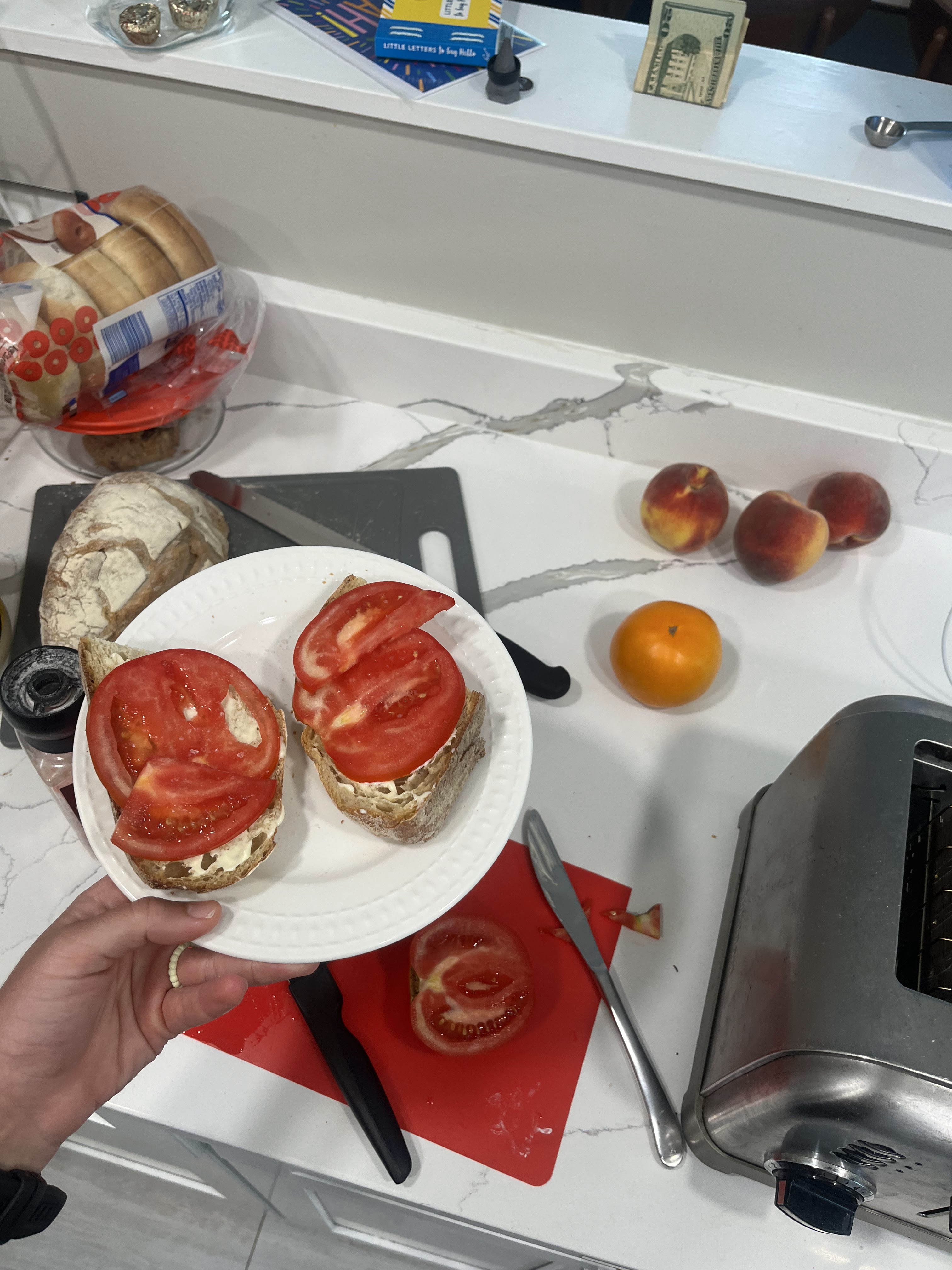 …Eating: Sourdough bread – yum. I bought a loaf of sourdough bread from the farmer’s market on Sunday and then Patrick made homemade sourdough on Monday! I put half of the farmer’s market bread in the freezer and we already ate the other half. Patrick’s fresh bread is sitting on the counter. We saved half a loaf for ourselves and gave the other half and another whole boule to our neighbors. Another perk of the weather cooling down? More bread baking!