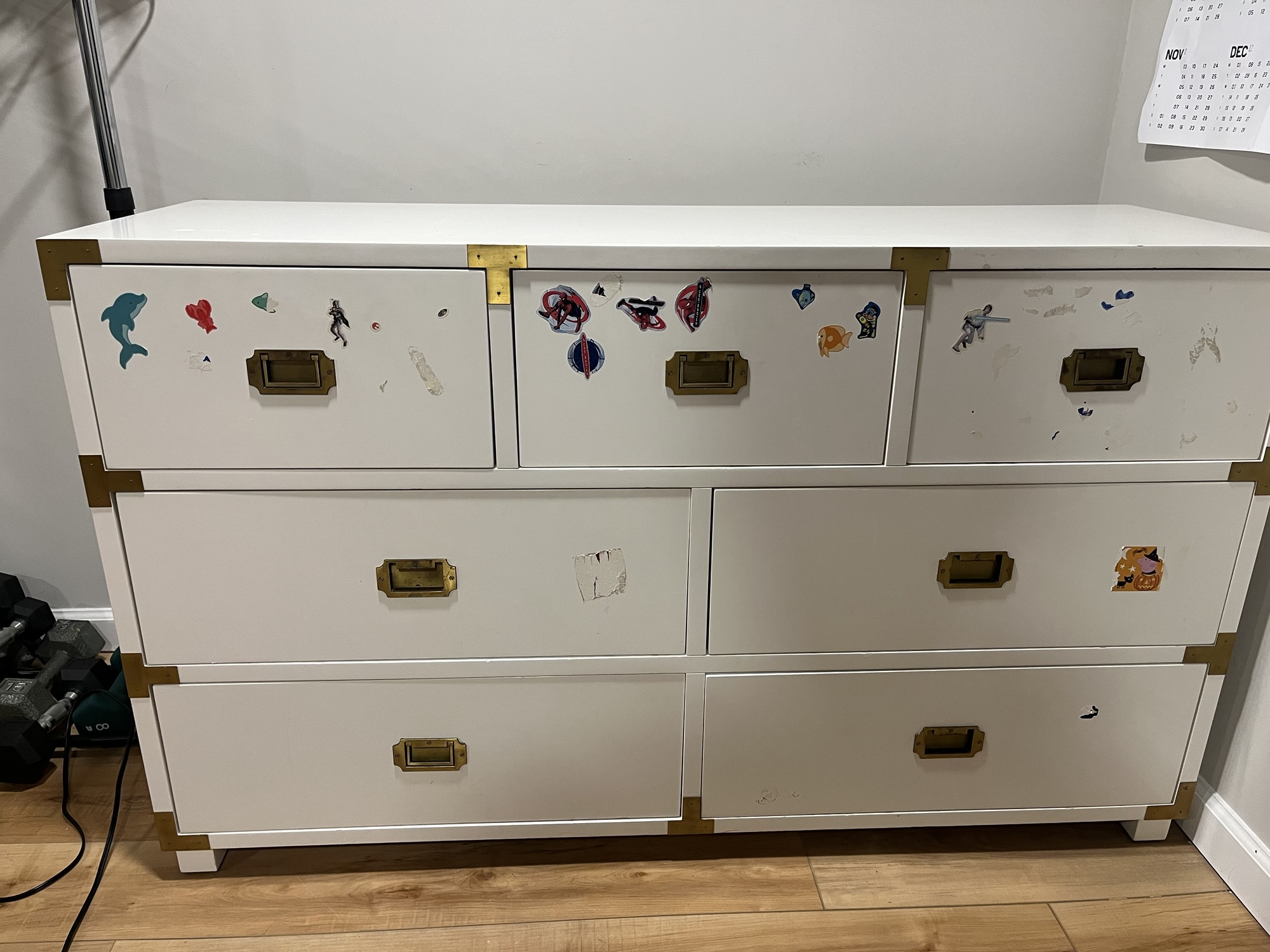 Yesterday I spotted a white dresser on the curb in our neighborhood when finishing my run. I sent a photo to Patrick and suggested grabbing it for the basement to replace our crappy dorm room-style plastic drawers. We lugged it into the car and then muscled it down into our basement! I think it’ll do the trick very nicely. It was fun to grab furniture like that, too. I don’t think I’ve done something like that in a hot minute!