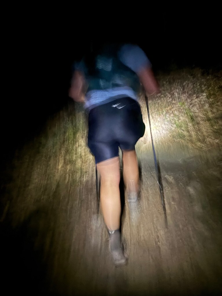 There’s a big climb called Jawbone up to the top of Kerns Mountain and I knew it would suck given how fatigued my legs felt. I was pleasantly surprised when we made it to the top because I thought time would drag on! I just stared at the portion of the trail that my headlamp illuminated and trudged to the top!