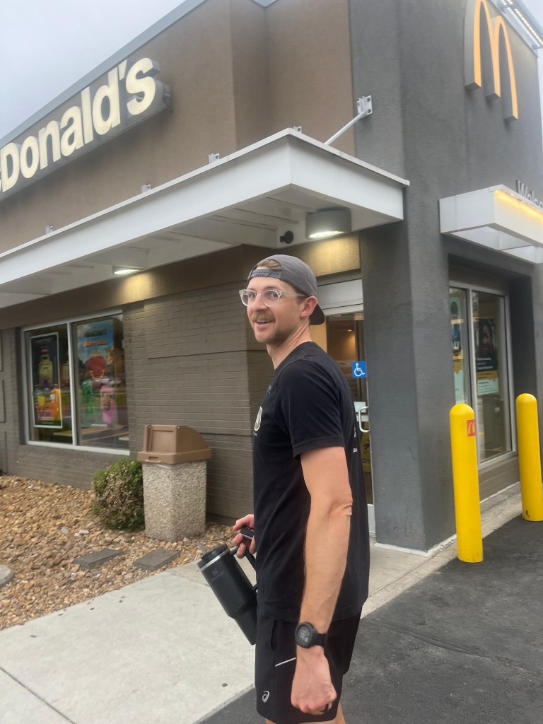 We finally finished at 3:30 am, quickly downed protein shakes, changed our clothes, and climbed into the car to take a nap. We both brought our sleeping pads and bags, and it was our first time trying to actually sleep in the car – something we’ve talked about since we bought it in 2020. I wouldn’t say it was the most comfortable, but it got the job done!
