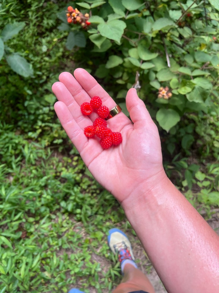 - Run into a fellow VHTRCer, learn that the berries around you are not unripe blackberries but, in fact, perfectly ripe wine berries! Eat a ton of them before you realize you took him at his word and did not Google to double check that they weren’t toxic. I’m still alive! (And these berries are safe and edible.)