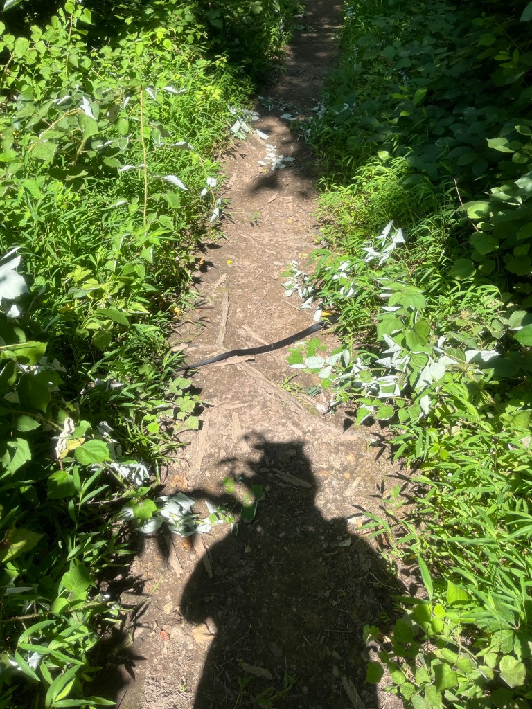 - Spend the first loop genuinely surprised you haven’t seen a snake. Almost immediately in the second loop, nearly step on an Eastern Black Rat Snake. Consider touching it because you know they’re not venomous. And because you’re only 95% sure that’s what snake it is. Resist the urge and continue on.
