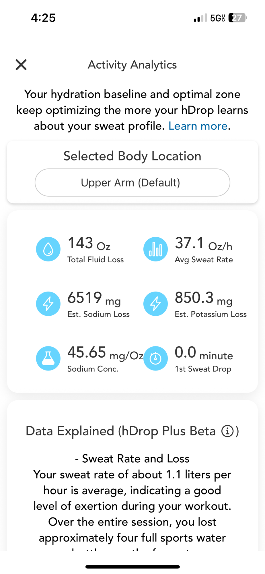 - Finish your 15 mile run so sweaty it looks like you jumped into a pool. Marvel at the sheer amount of fluid and sodium you lost (this data is from my Hdrop). Towel off, change into a cute little sundress, put on some fresh deodorant, and pretend like you don’t smell like a dead animal.