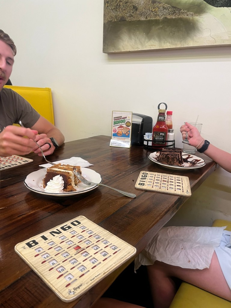 She arrived Thursday evening and we immediately went out to dinner. The diner we went to had Thursday night bingo, so of course we had to play. I even won a round! It is so exhilarating to win at bingo. This diner is not far from our house and seemed to have a lot of regulars, so we’ll have to go back.
