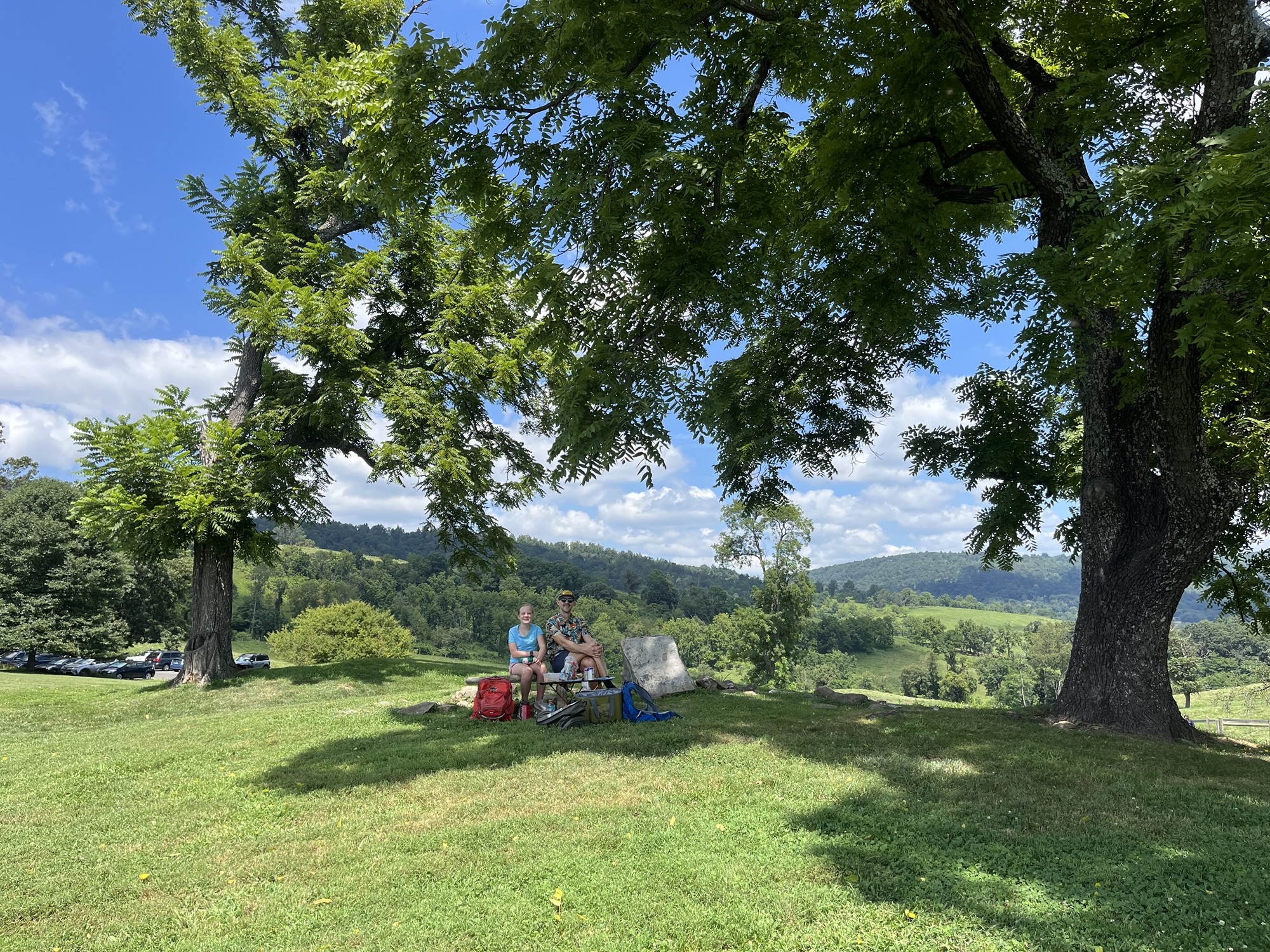 After a nice loop through the forest, we had a picnic in the field by the headquarters. Not a shabby lunch or view.