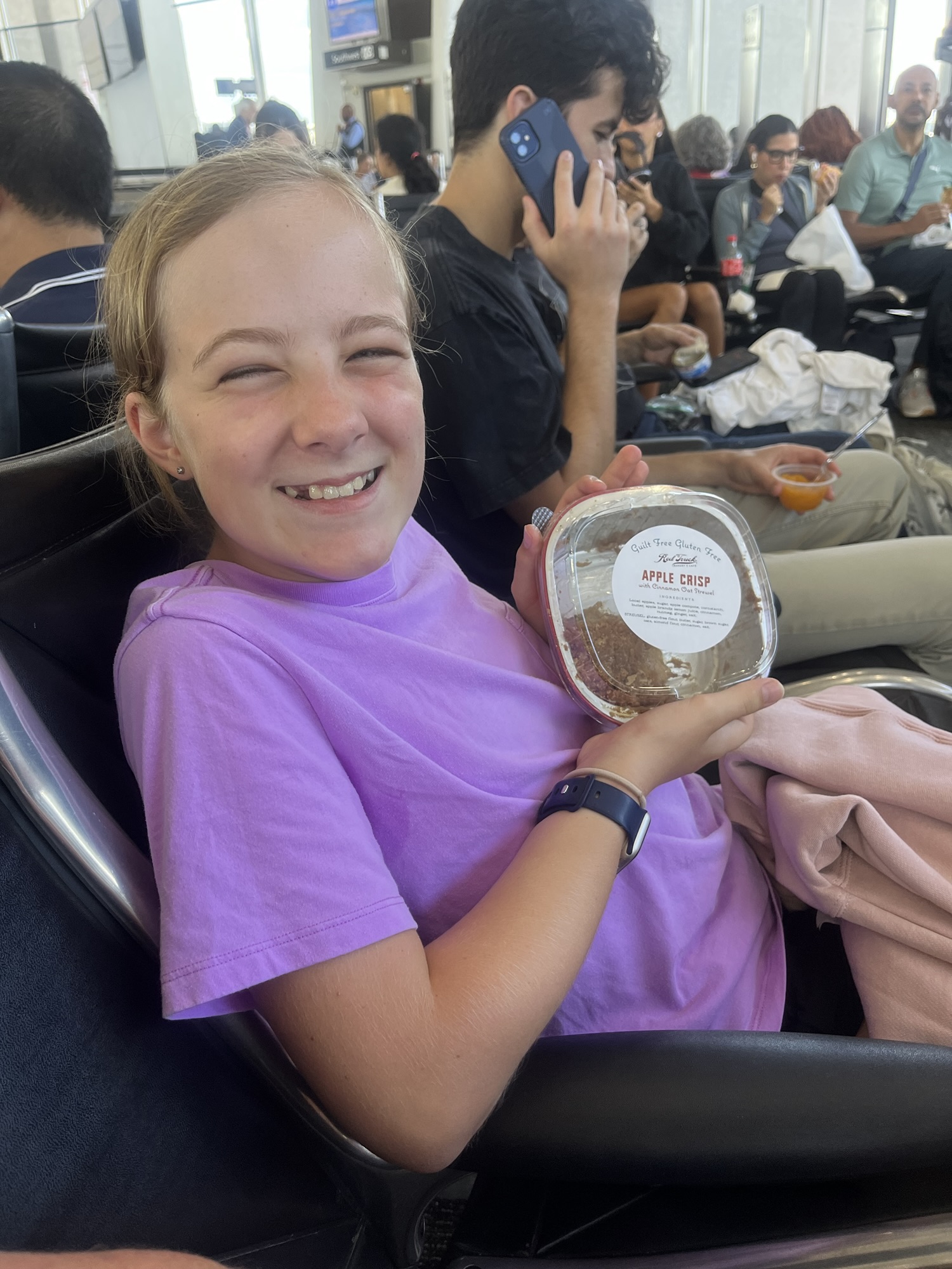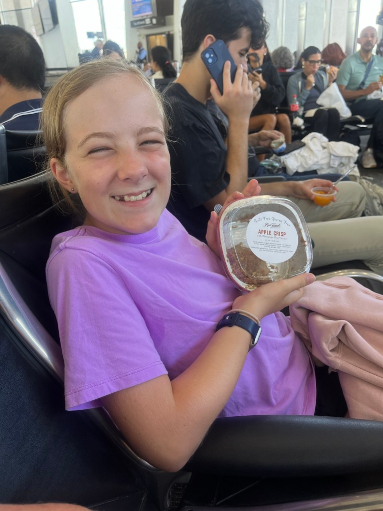 Clara even had some leftover apple crisp from Red Truck Rural Bakery for her plane snack.