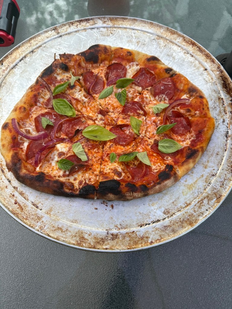 …Eating: On Friday, we had some friends over and we made homemade pizza, this excellent salad, and Negronis! It was a beautiful evening, so we sat outside with the string lights on and it was wonderful. On Sunday, we made a charcuterie board and shared it with neighbors! Boursin cheese is the best.