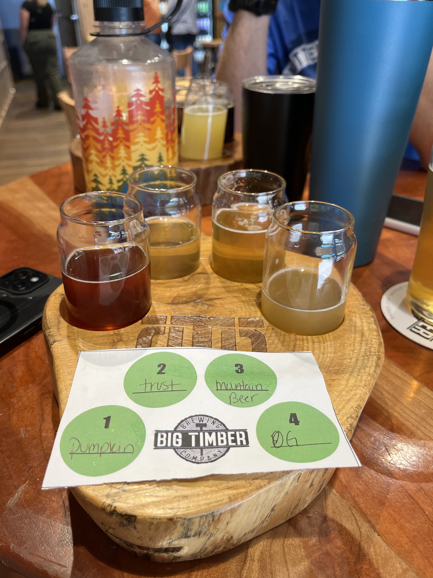 We finished off our trip around town at Big Timber Brewery. I, someone who famously hates beer, got a flight and it was gross. No shade to that brewery! Beer is just nasty hehe. I don’t drink a lot of alcohol, but I’d rather a wine tasting.