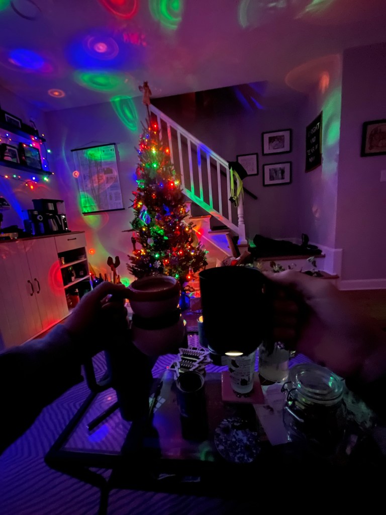 Oooh, aaaah, the ambience. You can’t tell, but I’m drinking out of a snowman mug here.