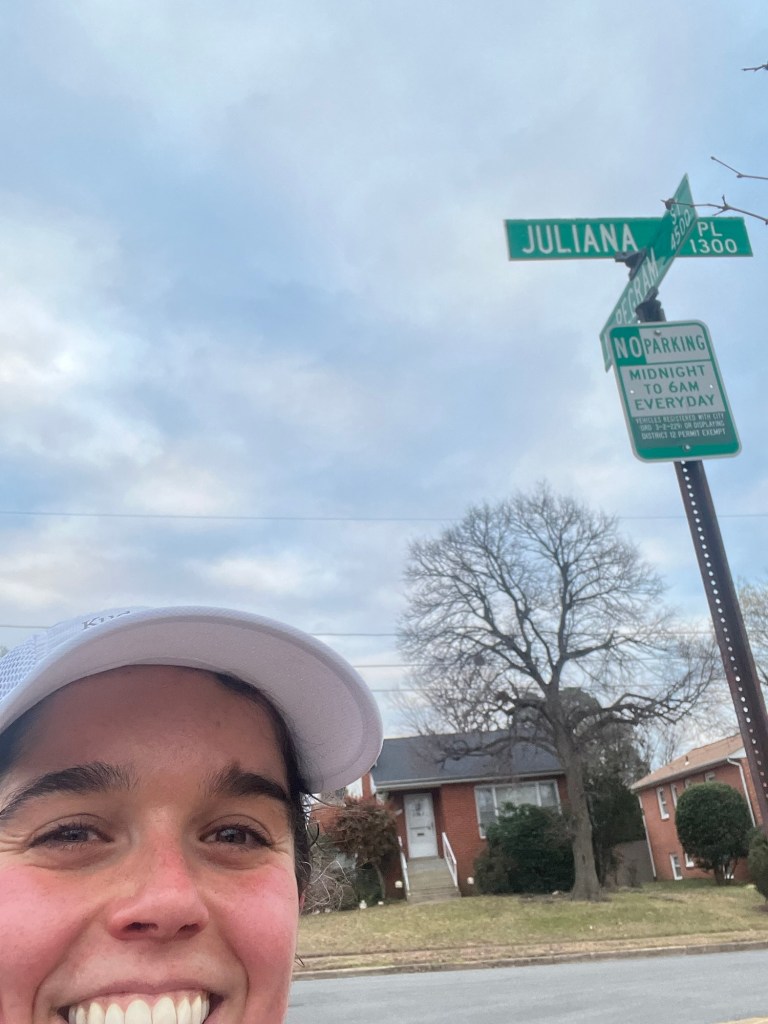 …Discovering: Juliana Place! I was on a run on NYE and needed to check my map to make sure I was making a correct turn. When I zoomed in on the area, I noticed Juliana Place just two blocks away! I had to make the extra excursion, duh. Anyone out and about probably thought I was insane, but it’s not every day that I see my name (especially spelled correctly) out in the world!