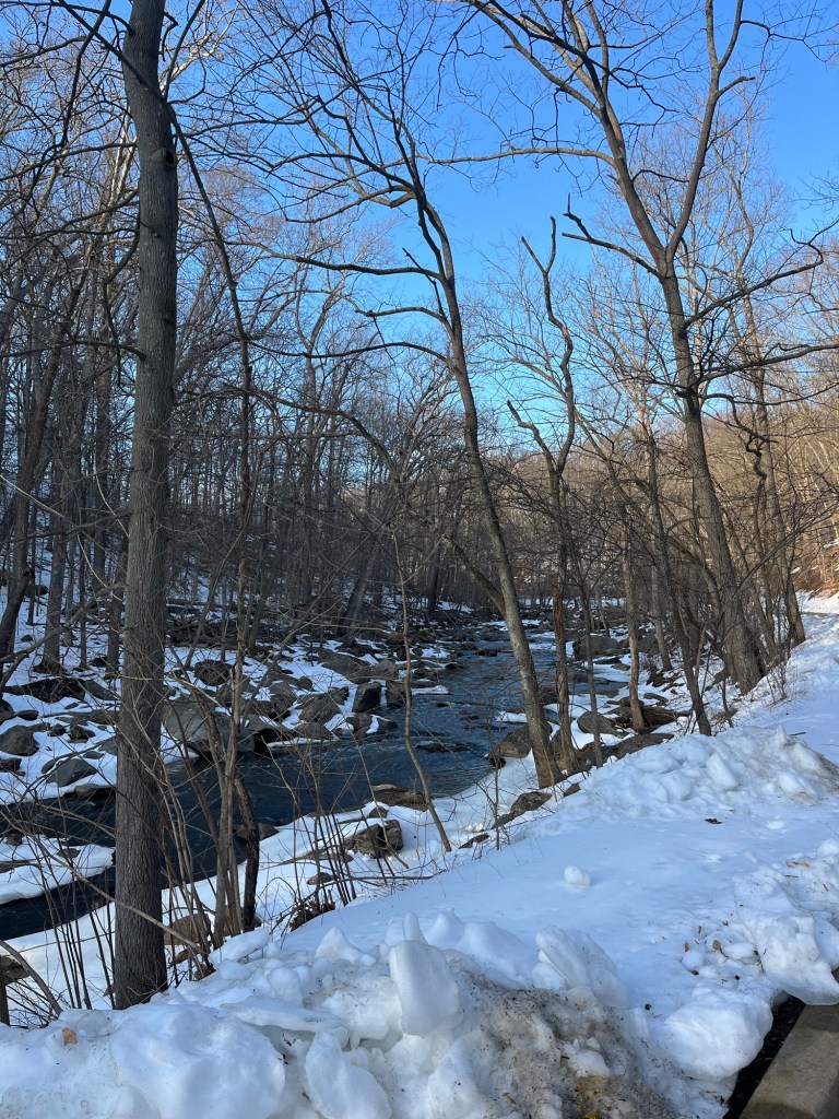 This day had a high in the mid 50s so naturally we decided to procrastinate our runs until the warmest part of the day. My soul needed it! We slept in and I make a shaken iced espresso to celebrate the warmer weather. Naively, we thought the blip of warmth would be enough to melt the trails at Rock Creek Park and headed there in the afternoon for the run.