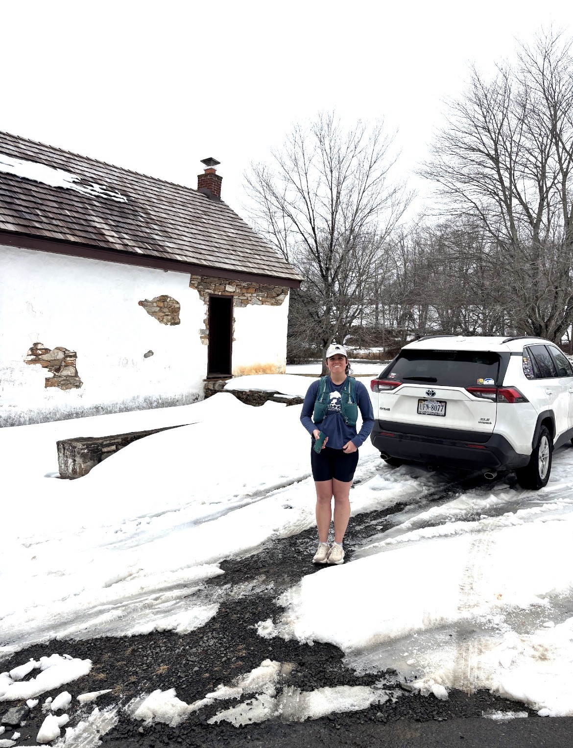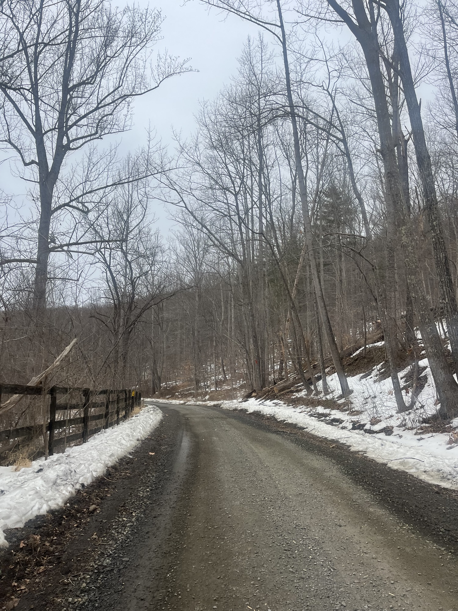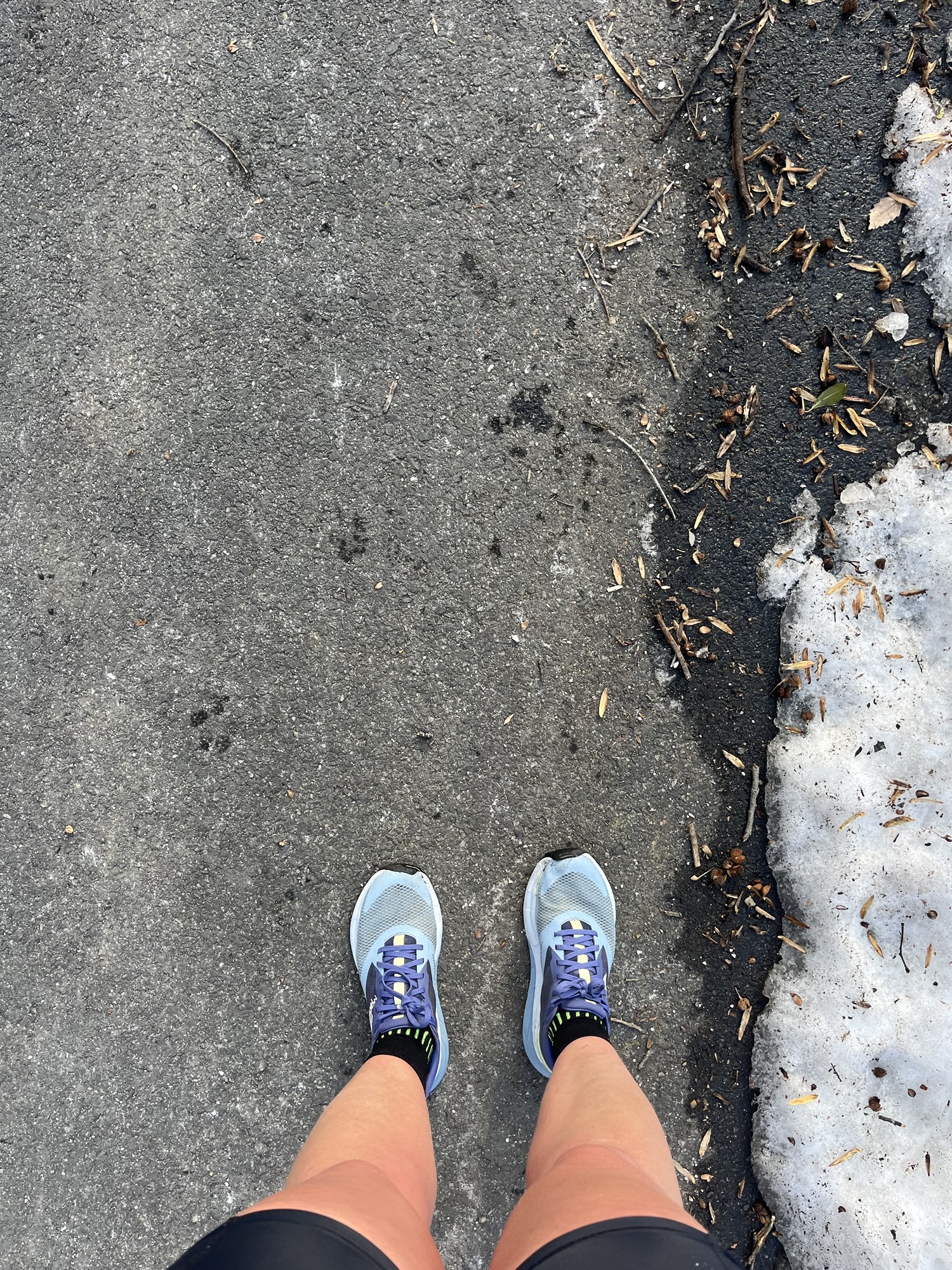 I knew this was likely going to be a bust, so I opted to wear my most comfortable trail shoes – should I need to take it to the roads. And to the roads I went! I tried to shuffle through maybe 2 miles of trail and it was a slick, slushy mess. I couldn’t get solid footing anywhere and even walking (very slowly) uphill felt treacherous and annoying. Once I made it to the road, I roughly mapped out a new route and just went with it.