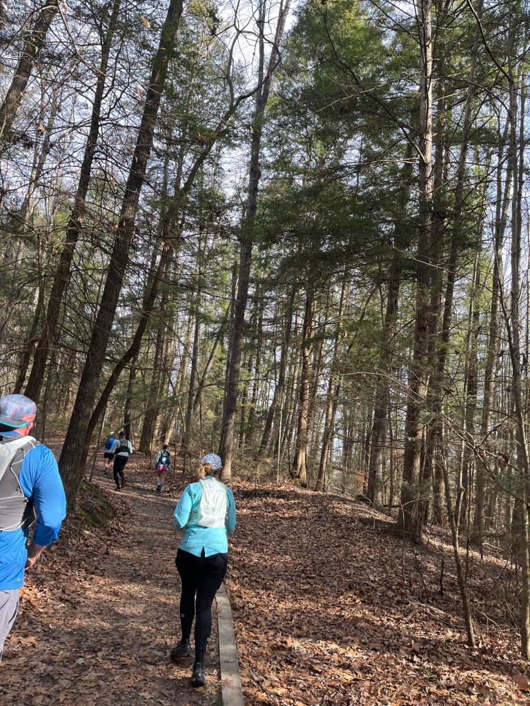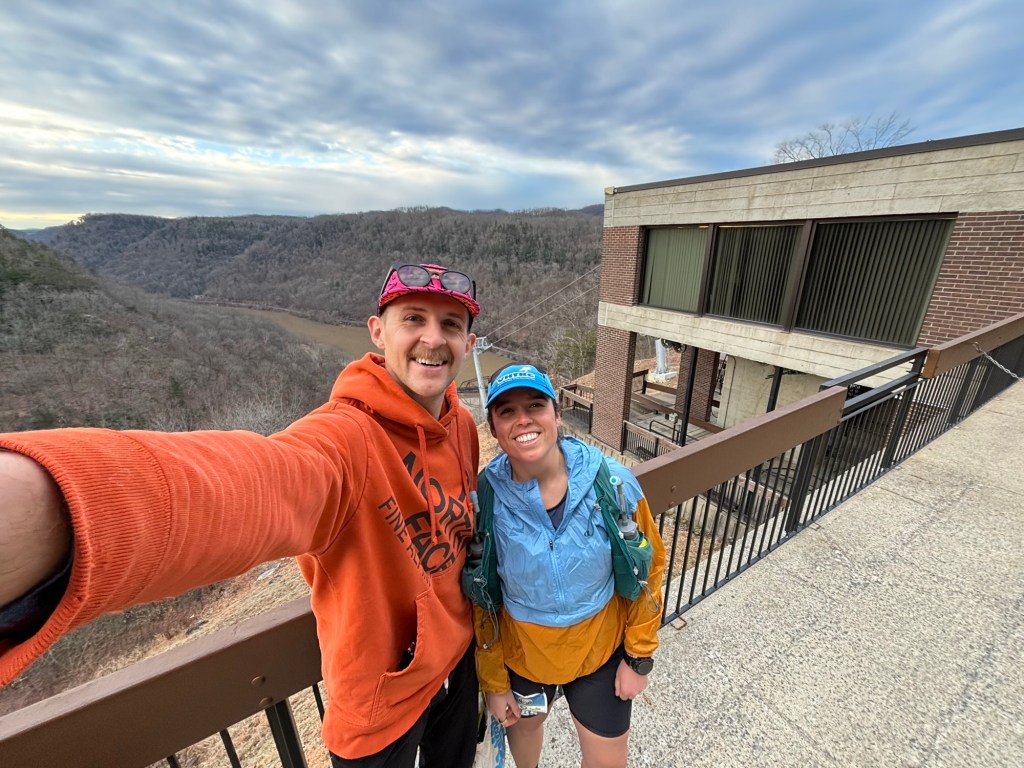 Yesterday was the Cabin Fever 50k in New River Gorge National Park in West Virginia. Erica and I did this the first year it started (2022) on a slightly different course. We all went back last year to give it another whirl and it rained the ENTIRE time. Erica and I still had a lot of fun, though. This year, it was just me, Patrick, and Alaska trekking down to Fayetteville, but the weather looked promising and I was excited to see what I could do.
