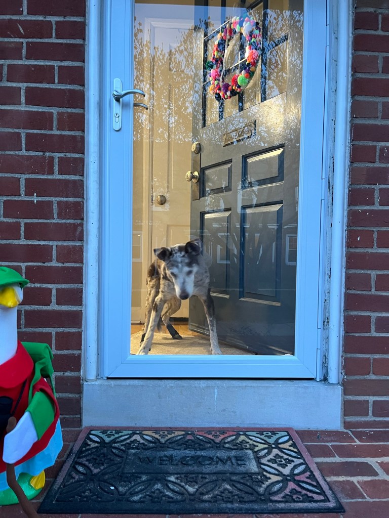 …Celebrating: Our new storm door! We’d been talking about this for a year and finally made it happen. I love it. So much more light can stream into the house and Alaska can get an unobstructed view of the world! I love seeing her stand guard.