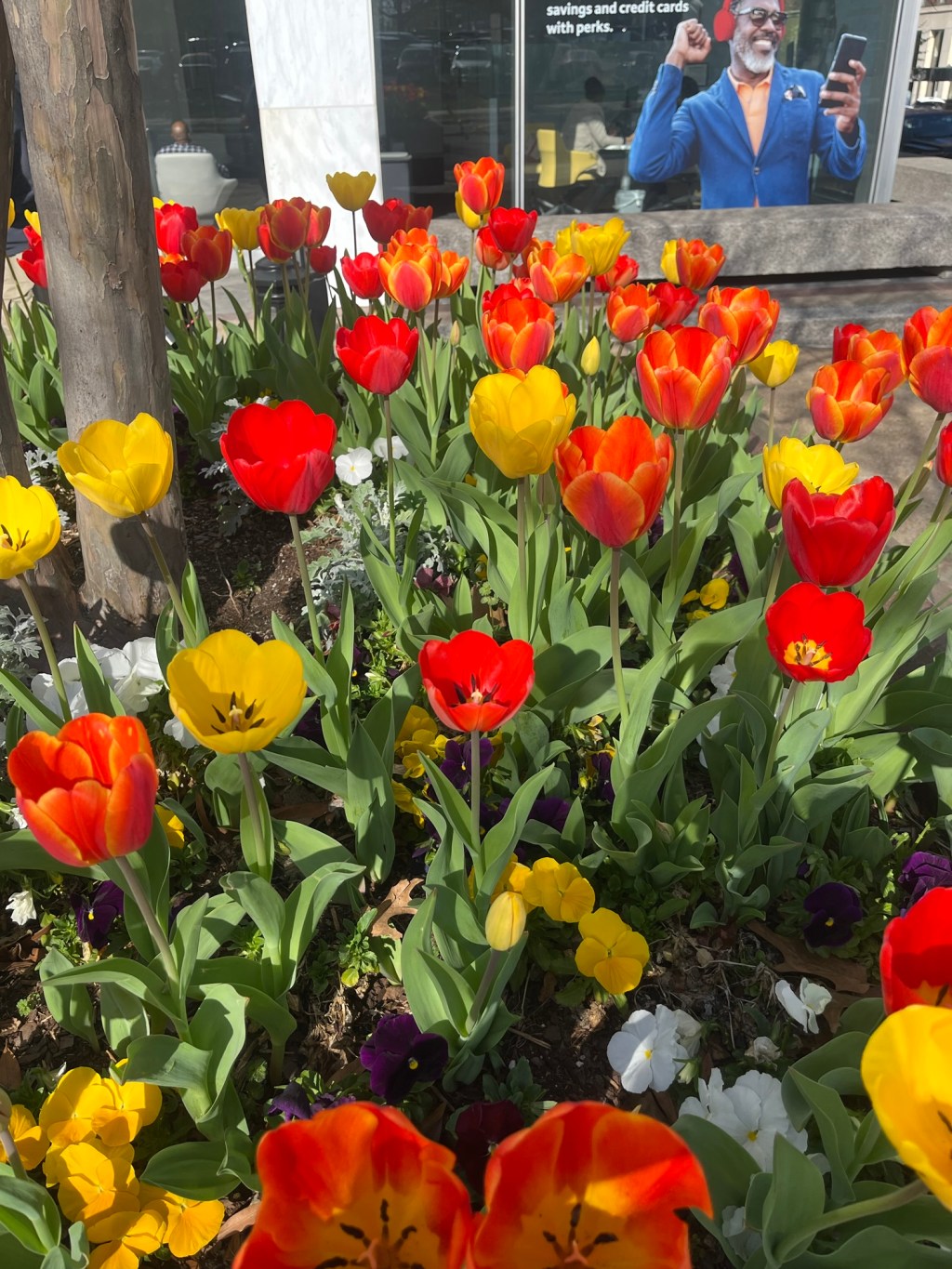 DC is all around gorgeous in the springtime. Between the cherry blossoms, tulips, and other beautiful plants flowering around us, my allergies might be terrible but the views are fantastic. Yesterday I had to walk to the bank for work and encountered these stunning tulips in giant planters along North Capitol. The teller and I even had a conversation about how beautiful they are! She commented that she’s watched so many people stop to take photos of them.