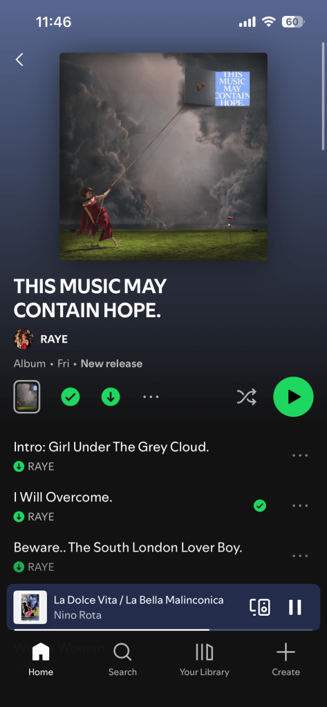 I cannot stop listening to this work of art. Raye is so talented. This album is moving and powerful and still makes you want to jump and dance. I cannot recommend it enough!