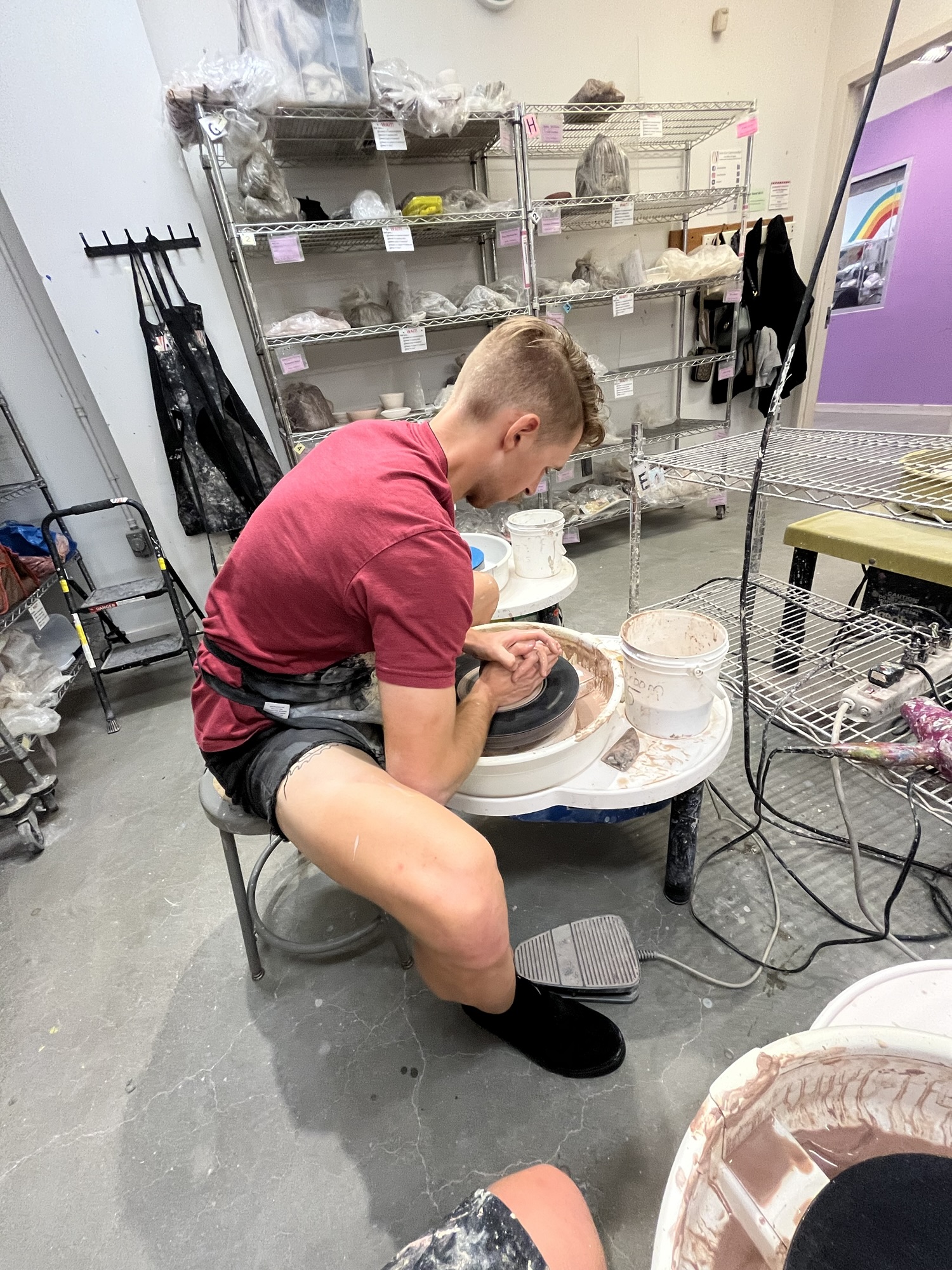 Patrick ended up making a small cortado cup and mine is going to make a great yogurt bowl/cappuccino cup?? We’ll see if it survives the kiln.
